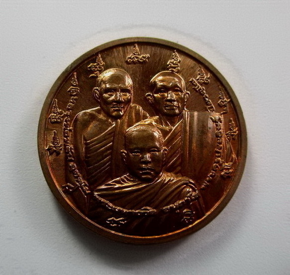 709 เสนอเหรียญกลม ไม่มีห่วง สามพระอาจารย์ (หลวงพ่อพลับ อุตตโม พระมหาถวิล อนุภาโส พระครูประดิษฐ์ปิยวัณโณ วัดโพธิ์นิมิต ต.บางกุ้ง อ.เมือง จ.สุราษฏร์ธานี รุ่นสร้างอาคารอิ่มบุญ ปี 2549
