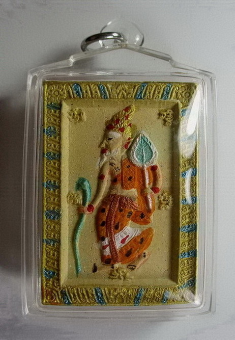 ax1938 เสนอผงสี่เหลี่ยมใหญ่ ขนาด 3.5 x 5 ซ.ม. พระฤาษี หลังยันต์ ฝังตะกรุด