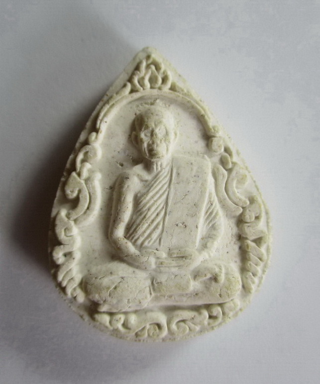 1325 เสนอผงหยดน้ำ หลวงพ่อไม่ทราบวัด หลังยันต์ ติดจีวร