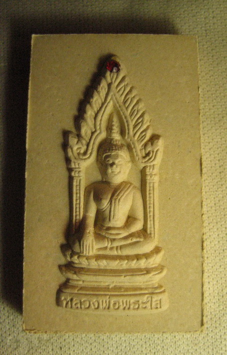 > เสนอผงสี่เหลี่ยม หลวงพ่อพระใส วัดโพธิ์ชัย อ.เมือง จ.หนองคาย รุ่นสไบทิพย์ พลอยสีแดง