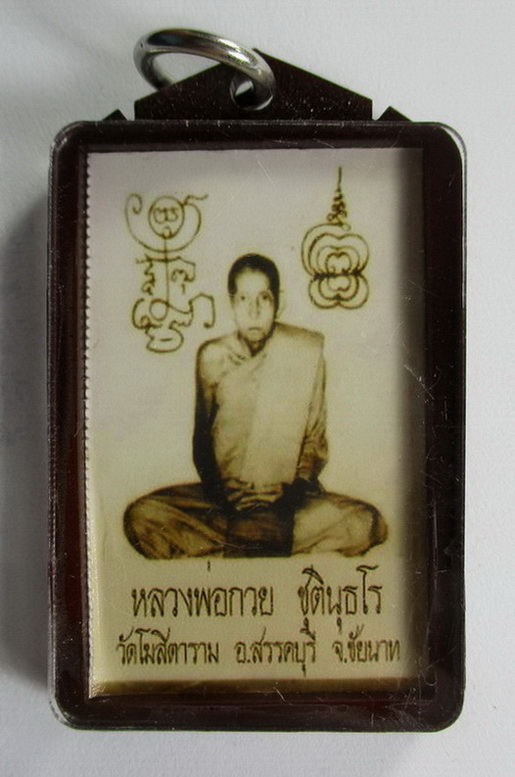2104 เสนอภาพ หลวงพ่อกวย ชุตินธโร วัดโฆสิตาราม (วัดไชยนาท) อ.สรรคบุรี จ.ชัยนาท หลังติดจีวร จารหมึก