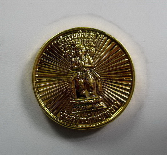 2130 เสนอเหรียญกลมเล็ก กะไหล่ทอง ไม่มีห่วง เจ้าชายอึงไฮ้ยี้ โรงเจรักศีลธรรม อ.ปากน้ำ จ.ชุมพร รุ่นสร้างถ้ำพญางูขาว